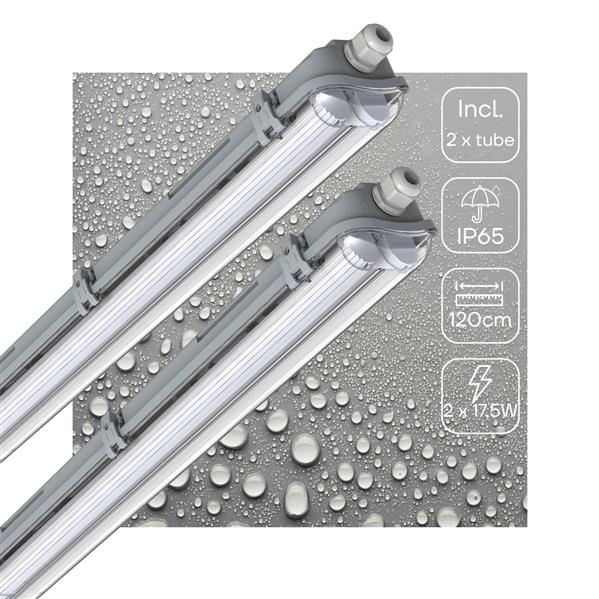 Complete set voor dubbel armatuur met twee LED TL lampen (120 cm)