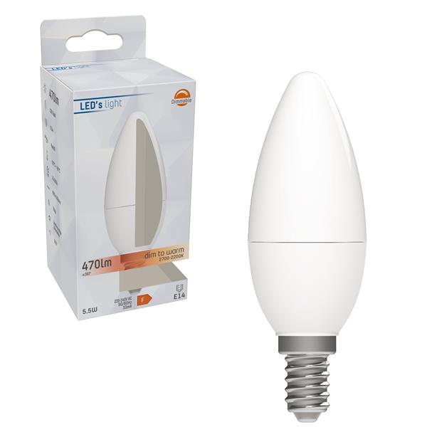 Verpakkingsinhoud:  1 x DimToWarm LED Lamp Kaars - Ø 3.5 cm - 5W (40W) -   470 lumen - E14 (kleine) fitting - Warm wit licht (2700-2200 K)