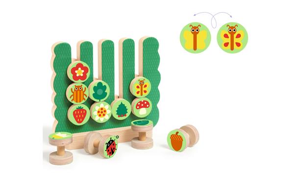 Het kind kiest een opdrachtkaart, selecteert de juiste houten fiches en laat ze in de houder glijden om het sjabloon op de kaart perfect na te bootsen. Maar opgelet, dit is niet zo gemakkelijk als het lijkt, de fiches zijn lichtjes verschillend aan de voor- en achterkant.