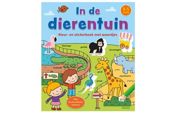 Sla snel dit stickerboek open en ga mee op ontdekkingstocht in de dierentuin. Je kan een kijkje nemen bij de pinguïns, µlangs het verblijf van de leeuwen lopen, de clownvis bewonderen in het aquarium en nog veel meer leuke plekken ontdekken! Door het boek heen leer je een heleboel woorden kennen. Maar wat dit boek echt leuk maakt, zijn de stickers die erbij zitten. Plak ze allemaal op de juiste plaats en kleur daarna de kleurplaten mooi in!