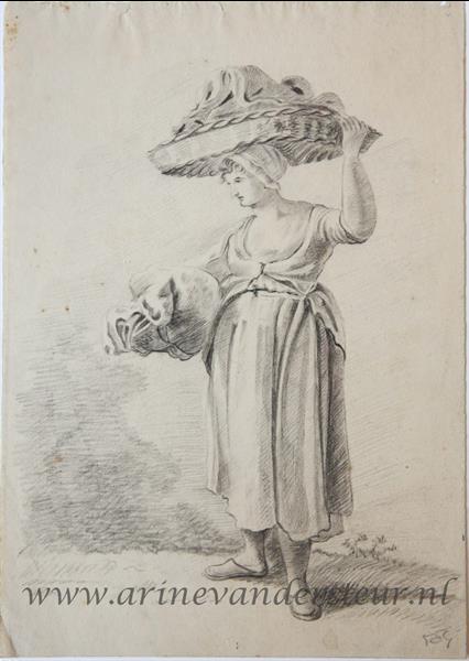 [Antique drawing] Woman carrying a basket (vrouw die mand dr