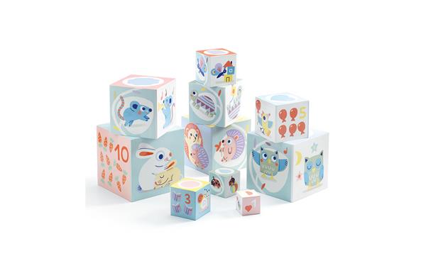 Prachtige blokken met leuke illustraties die kunnen worden gestapeld of in elkaar worden gezet. De grootste blok meet ongeveer 15 cm.